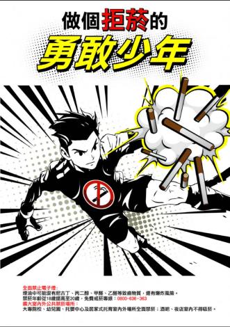 未滿20歲不得吸菸,近年來新型菸品電子煙、加熱菸、紙菸產品日新月異,對年輕族群更加誘惑,發育中的學生傷害更大,少年吔!當個勇敢拒菸英雄;電子、加熱菸(新型菸品)使用及販售皆屬於違法,請勿輕易嘗試以免觸法。
