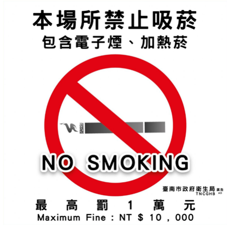 禁菸場所全面禁止使用、製造、輸入、販賣、廣告與菸品有關之物件。